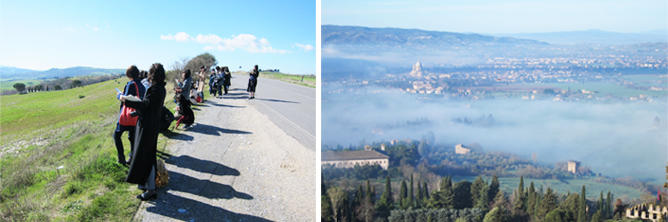 造形表現の一つの源流である西欧の美術・文化を肌で感じてくる研修です。イタリア諸都市を巡り、アッシジにおける女子修道院での宿泊体験やフィレンツェを中心にルネサンス美術に触れ、また、食文化についてもワイナリーが経営する農園レストランを訪れることで、その文化や芸術が生まれてきた土壌を体感することで異文化についての理解と教養を深めます。