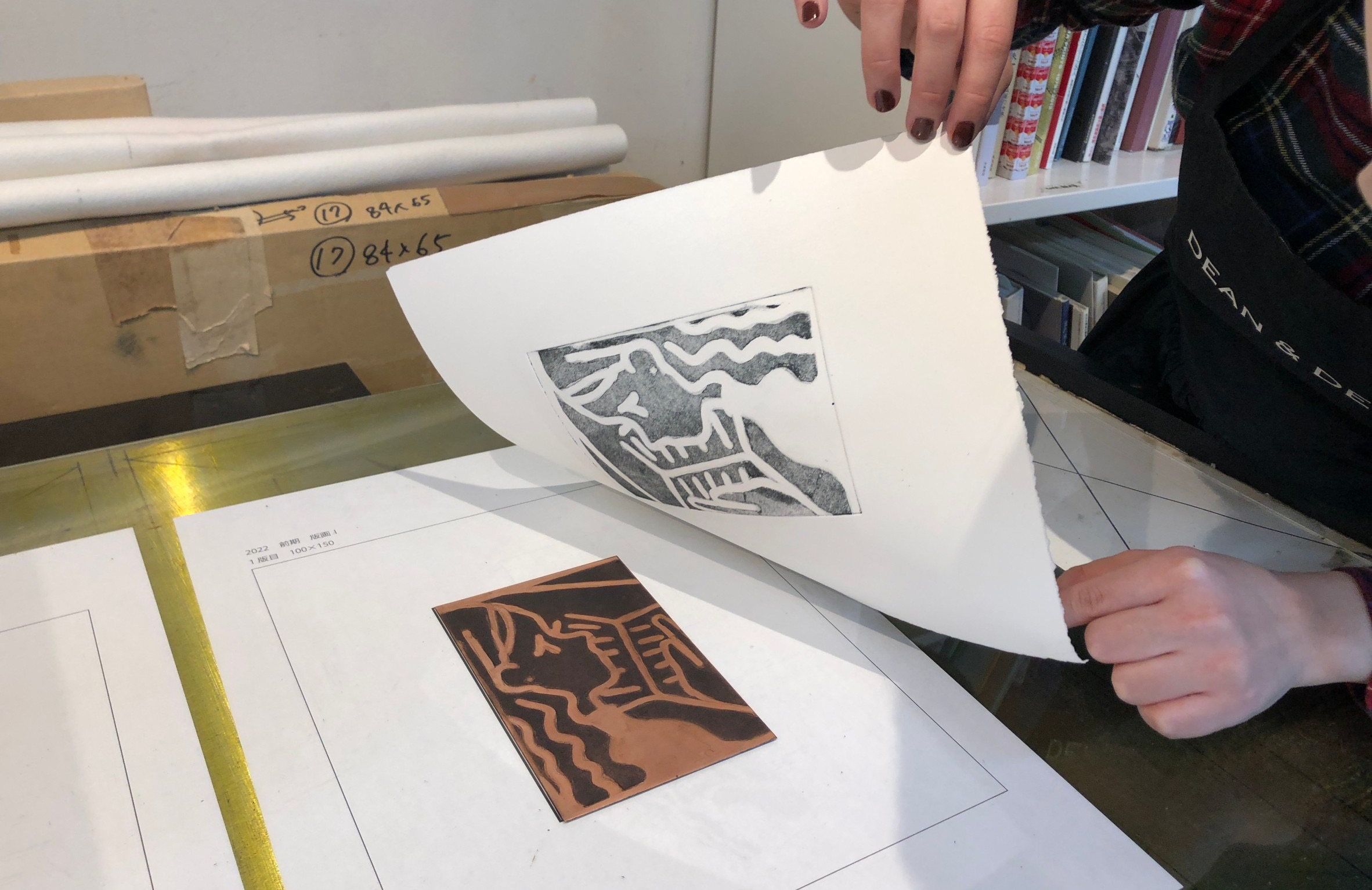 版画という領域の中でも銅版画、シルクスクリーン、リトグラフとそれぞれ興味のある分野を中心に学んでいます。卒業制作以外に、版画集制作や壁展示などゼミ内での共同制作も積極的に行っています。先生、助手の方々のご指導のもと良い雰囲気の中で日々自分と版に向き合いながら作品制作に励んでいます。