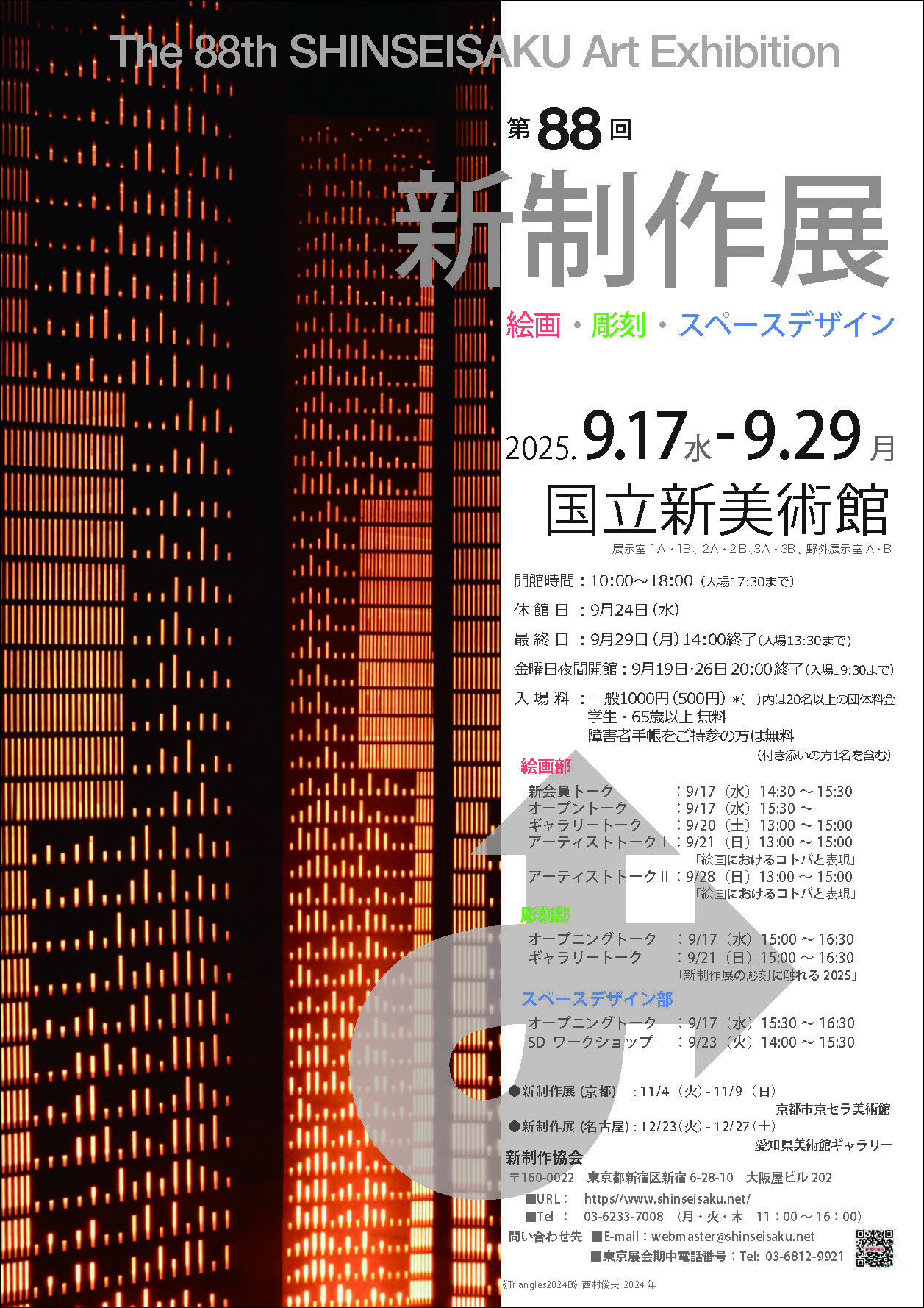 織物研究室 講師 大木敦子、期限付助教 遠藤綾香、教学助手 田中優衣が第88回 新制作展 スペースデザイン部 に出品します。