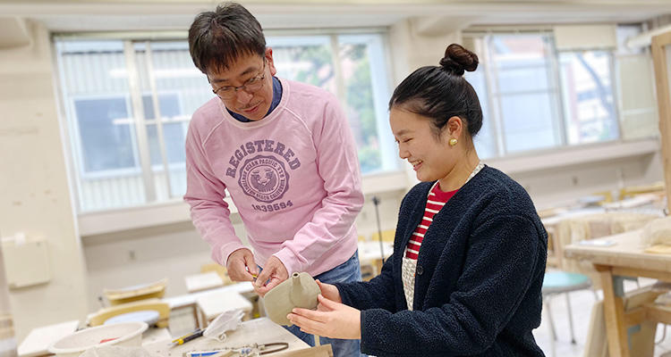 造形表現学科に進学したのは、幼い頃から好きだった美術について、専門を究めるよりも幅広い分野を学びたいと思ったから。今でも印象に残っているのは油絵の授業です。モデルの方を限られた時間の中でデッサンし、着色していったのですが、短時間に集中して描いた経験が初めてだったこともあり、それまで感じたことのない緊張感や達成感を味わうことができました。