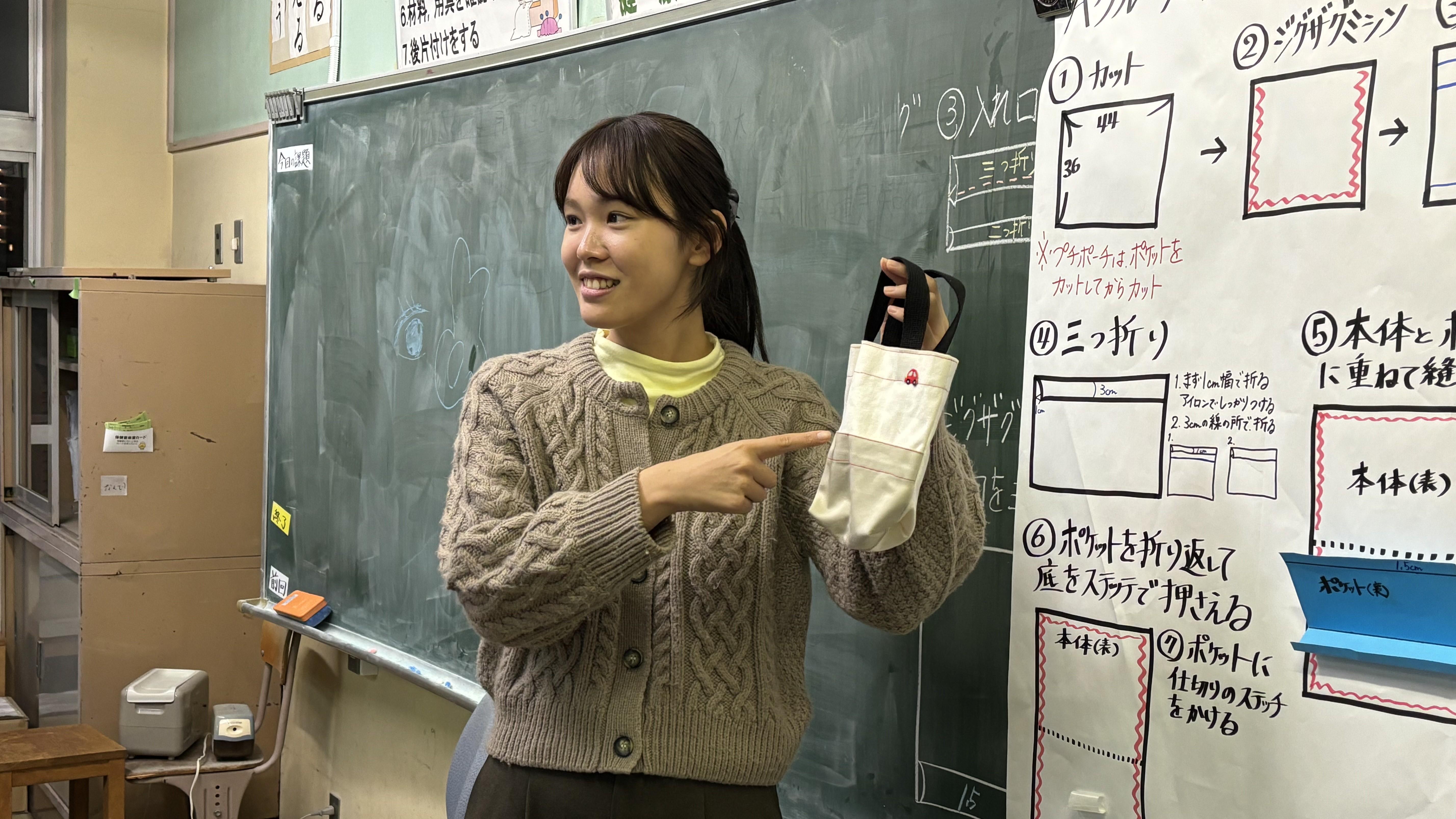 家庭科は、他の教科よりも生活に密接した教科だと考えています。定期テストや入試に直接関係しないからこそ、生活力や課題解決、新しい価値観、多角的な視点を養う授業を心がけています。子どもたちは調理より裁縫に苦手意識を持つことが多いですが、大学で学んだポイントを活用し、その意識を少しでも和らげたいと考えています。また、ものづくりの楽しさや、物を修繕・リメイクして長く使う大切さも伝え、持続可能な生活の意識を育てる授業を目指しています。