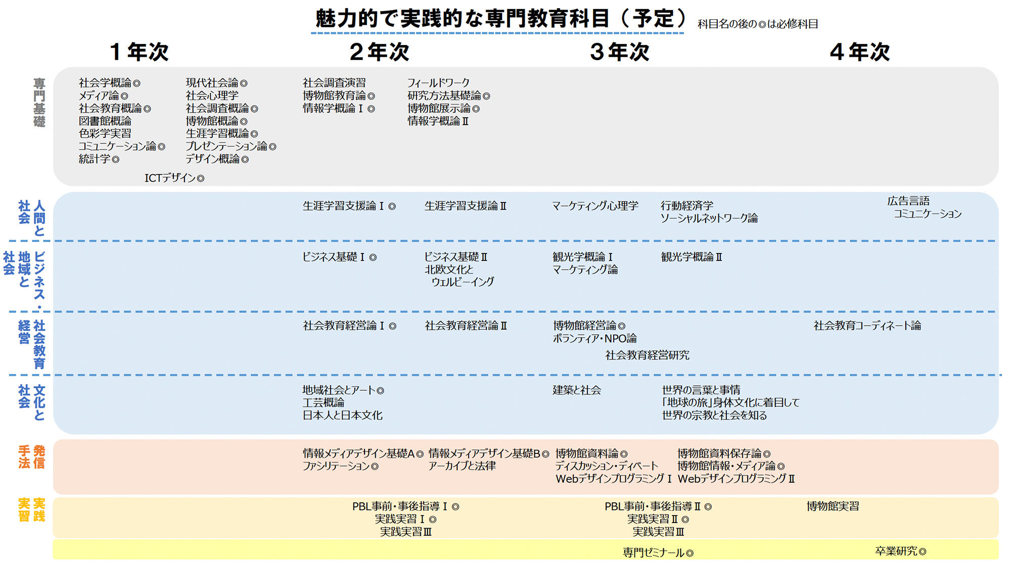 地域の文化資源を発掘し、ミュージアムにおける資料の収集、保存、活用の基礎を習得し、社会教育に関する知識・技術を身につける