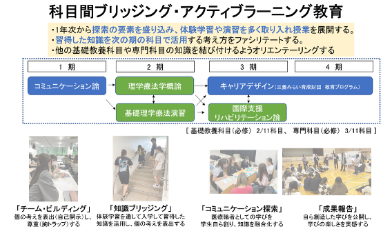 建学の精神である「自主自律」に基づく職業的自律を目指し、あらゆる世代の人々がその人らしく生活をすることができるよう、社会の ニーズに対応できる質の高いリハビリテーションサービスの実践力を養い、保健医療福祉の発展と向上に貢献できる人材を育成します。 時代に求められる知識とヒトの最新計測技法を学び、50 年先まで活躍できるセラピストを育成します。