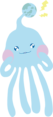 家政と火星をかけた「カセイちゃん」。かわいく親しみやすいユルいキャラです。世界へ発信していく大学でありたいというメッセージをこめて、頭には地球がついています。