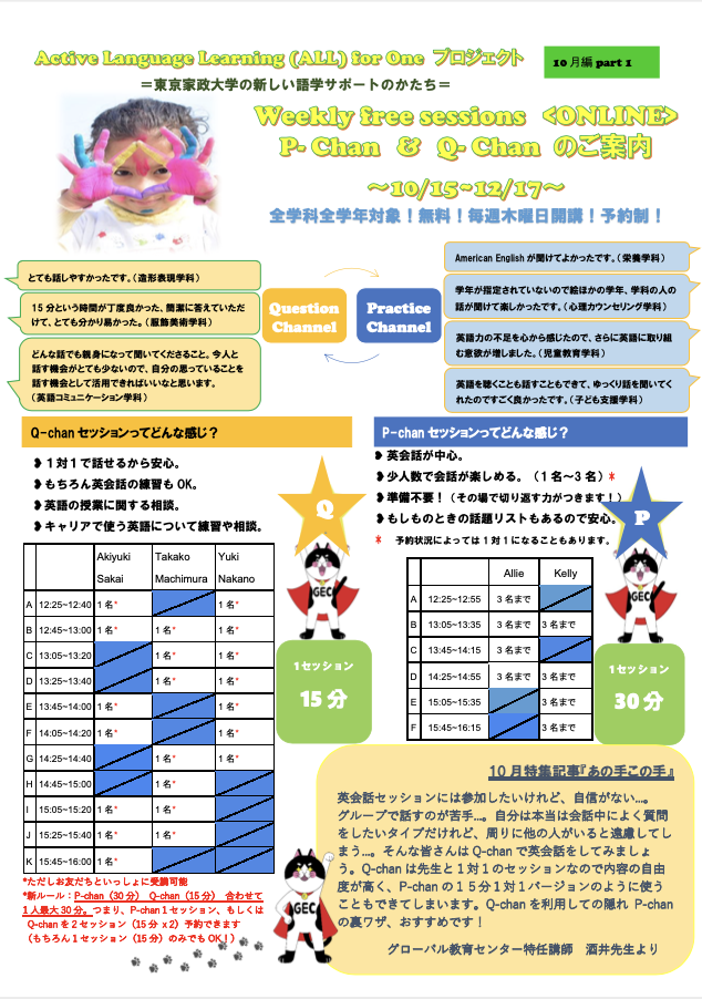 <ALL for Oneプロジェクト(特任講師による英語学習サポート)のご案内>