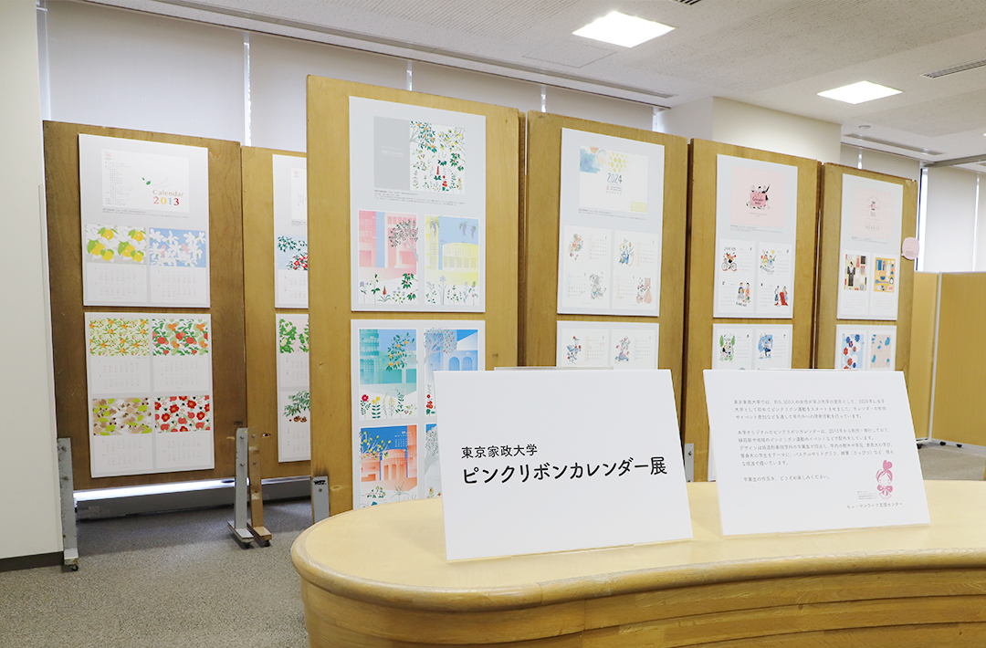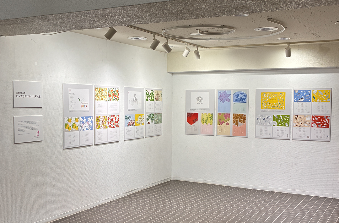 ピンクリボンカンレダーは、啓発活動の一環として文化祭(緑苑祭)や地域のピンクリボン運動のイベントなどで配布しており、学生が考案した女性の健康をテーマとしたレシピも掲載しています。デザインは造形表現学科の卒業生が行なっています。