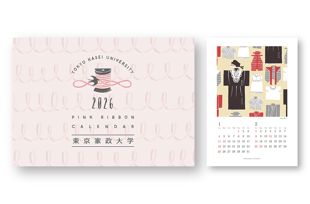 2026 CalendarDesign:ソエノアカネ(家政学部造形表現学科卒)東京家政大学を形作っているものがテーマです。歴史や特色、各季節の大学の雰囲気を感じ取ってもらえたらと思いながら制作しました。