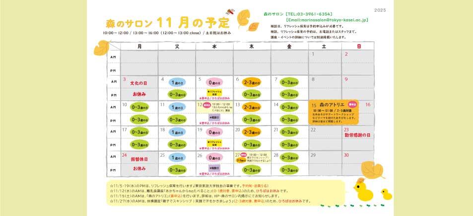 ※電話受付時間は、森のサロン開室時間とは異なります。予定表、利用案内をご確認のうえ、お越しください。