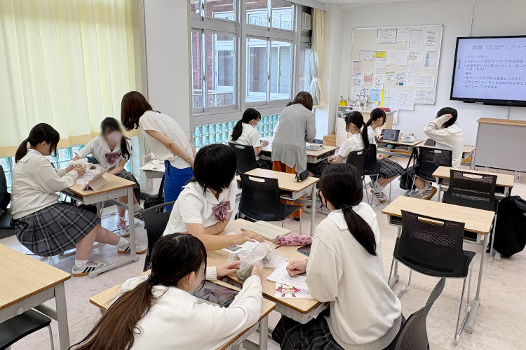今回の大学見学は、高大連携による活動の一環であり、服飾美術学科杉野先生による体験授業、服飾美術学科の学生との交流・キャンパスツアーが行われました。