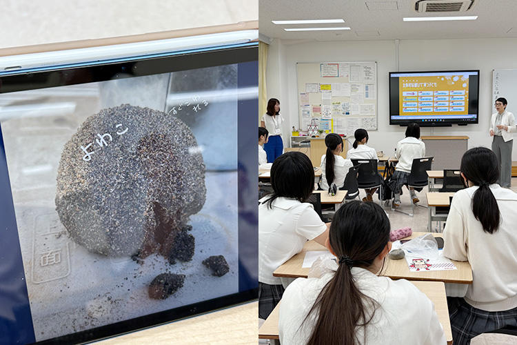この日は4つのグループに分かれて進めている探究学習の中間発表がありました。発表後、前田准教授からは各グループへのコメントとアドバイスがあり、生徒たちは熱心に耳を傾けていました。