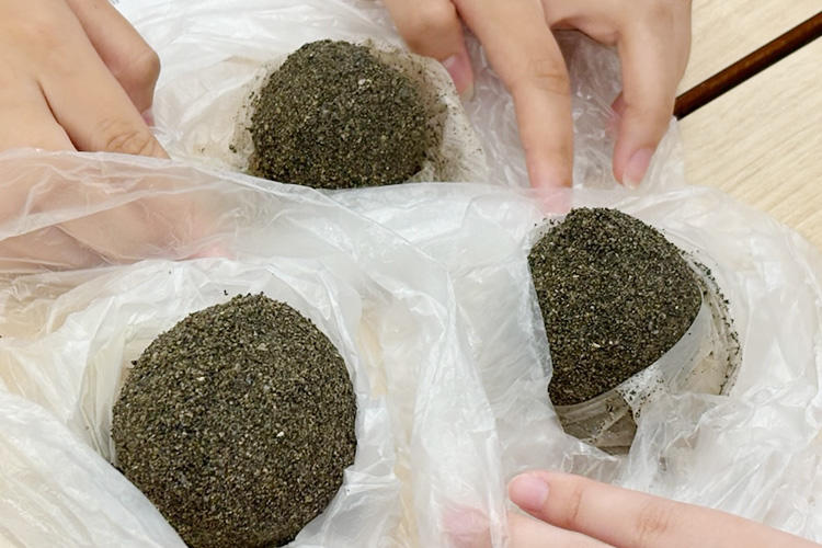 プレゼン発表後には事前に指示が出ていた課題「泥団子作り」について各自作ってきた作品?を見せ合い、泥団子作りで感じたことをお互いに意見交換することで子どもの気持ちを理解しようと真剣に話し合っていました。