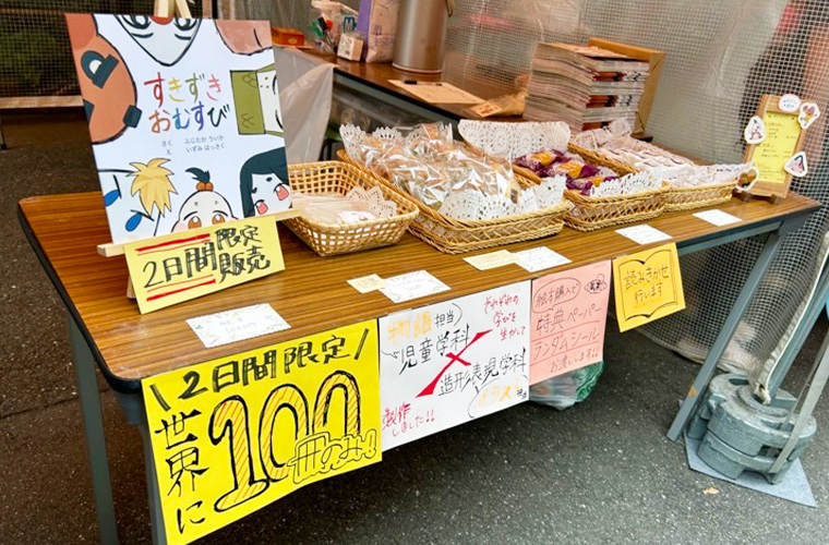・緑苑祭児童学科・保育科企画「みんなでプレイメーキング!OMOSIROランド」ブース内に、絵本『すきずきおむすび』を置いていただき、来場者が自由に手に取って鑑賞できる環境を用意した。
