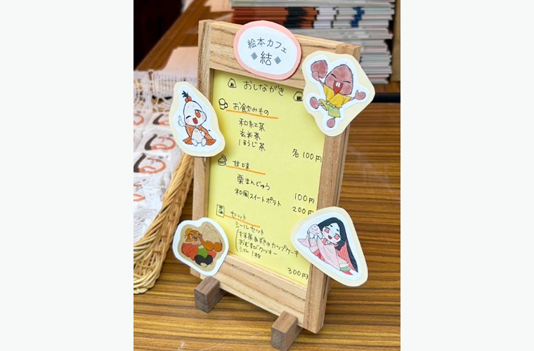 ・絵本『すきずきおむすび』の世界観に合わせ、和菓子・日本茶を楽しめる和カフェをコンセプトに運営。東京家政大学緑窓会カフェコクリコにご協力いただき、抹茶あずきカップケーキのほか、オリジナル商品「おむすびクッキー」を製作してもらった。
